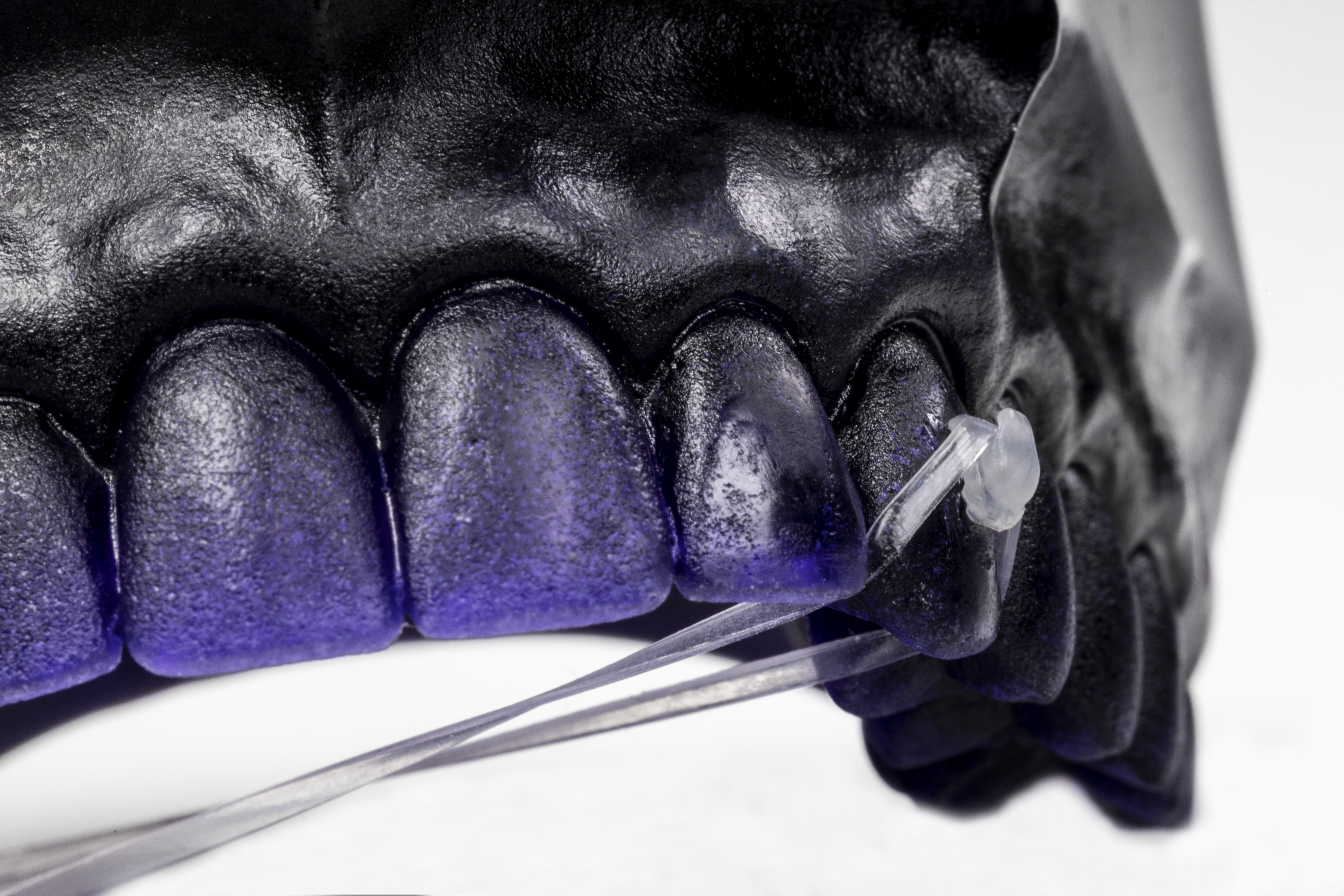 It can be applied on the aligner by using acrylic resin or adhesive for bonding