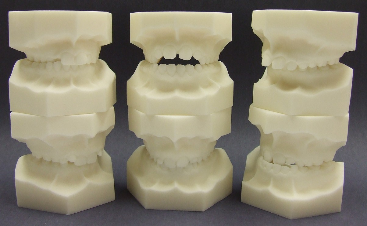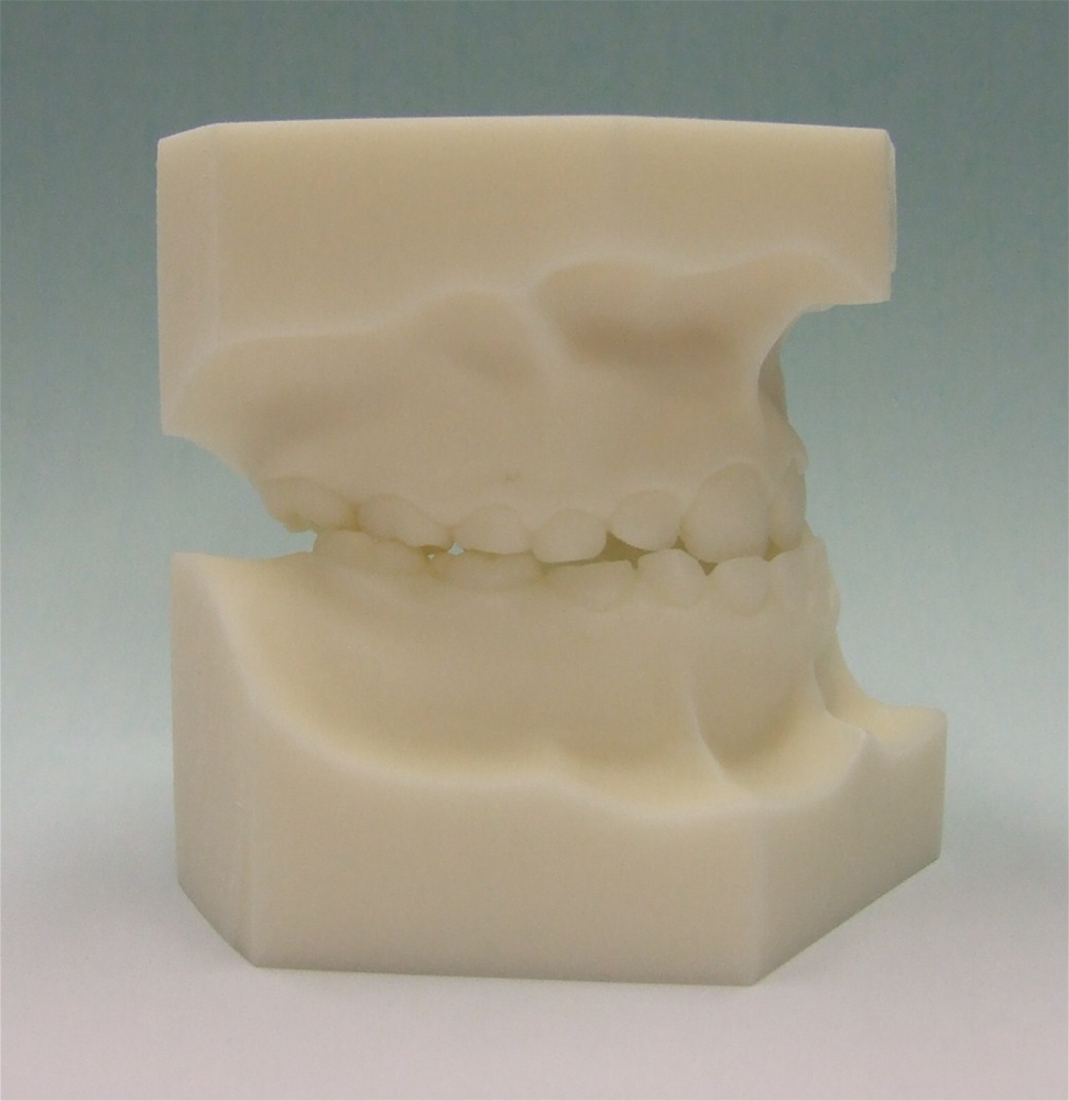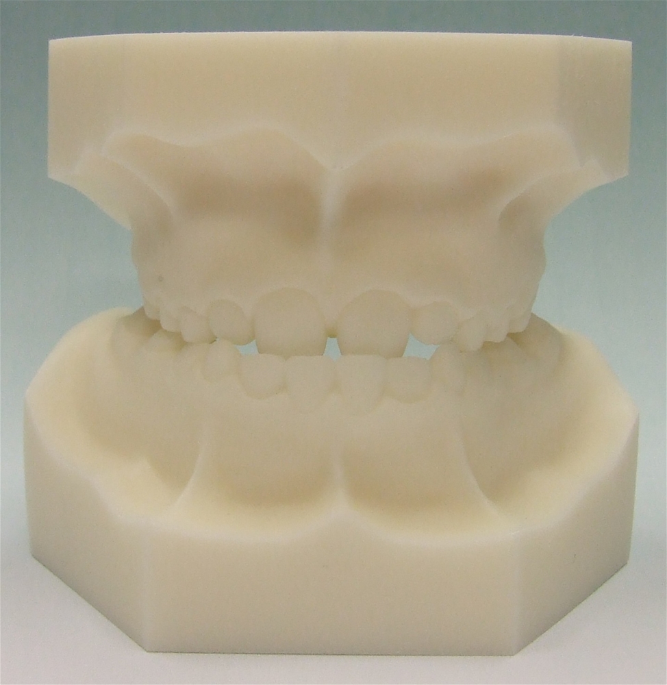 Model in acrylic resin. Tweed squaring, ideal to illustrate malocclusion to patients, for teaching in schools, universities, clinics. Lightweight, easy to handle, scratch-proof. On request we apply orthodontic devices.